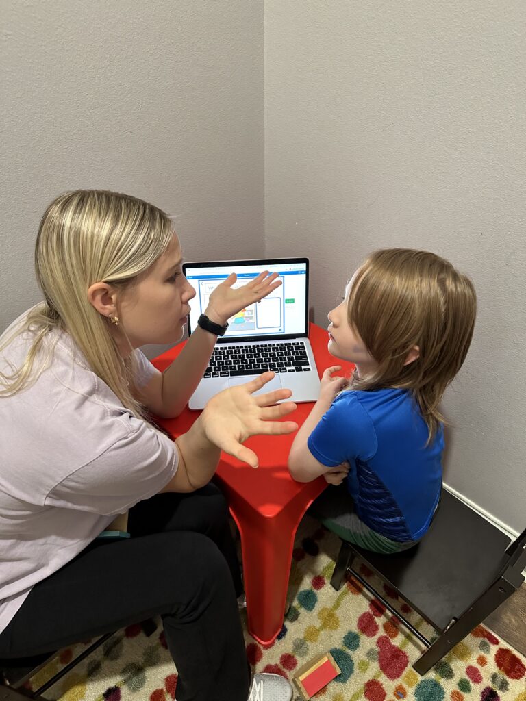 Your child’s therapy sessions will likely last 30 minutes and will focus on specific activities and goals set in the initial appointment. We document each visit to provide you with a detailed report, however you are welcome to sit in on the appointment and join the fun! Your child’s goals are updated regularly based on their progress. It’s important to remember, the earlier the intervention, the better the progress! We want to see your child as soon as possible to set them up for success. If you’re ready to learn more, give us a call to schedule an evaluation. Click here!